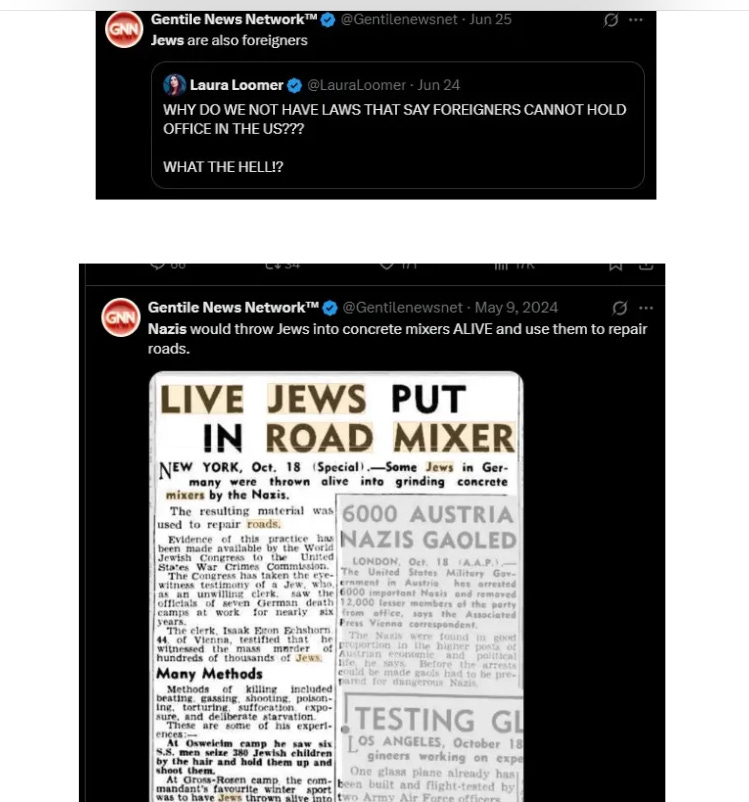 May 9, 2024 — “Nazis would throw Jews into concrete mixers ALIVE and use them to repair roads”